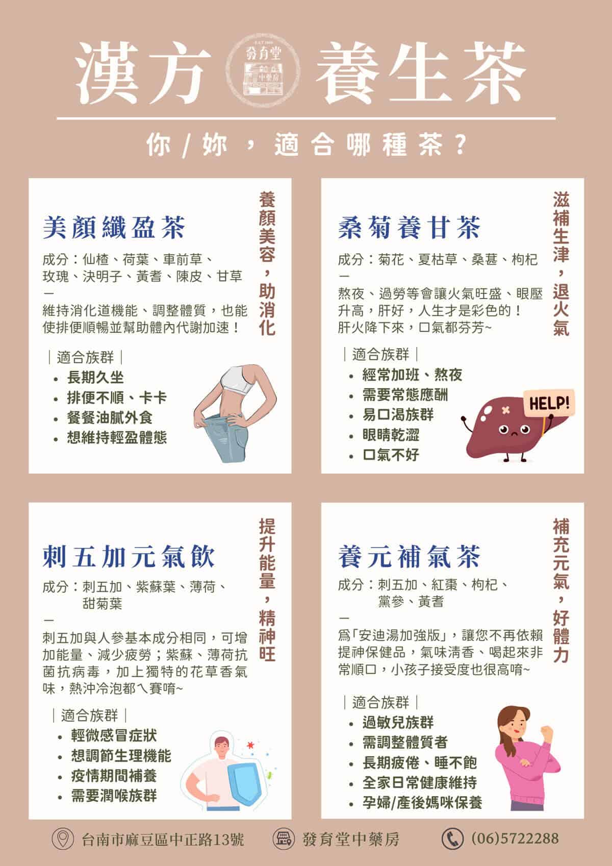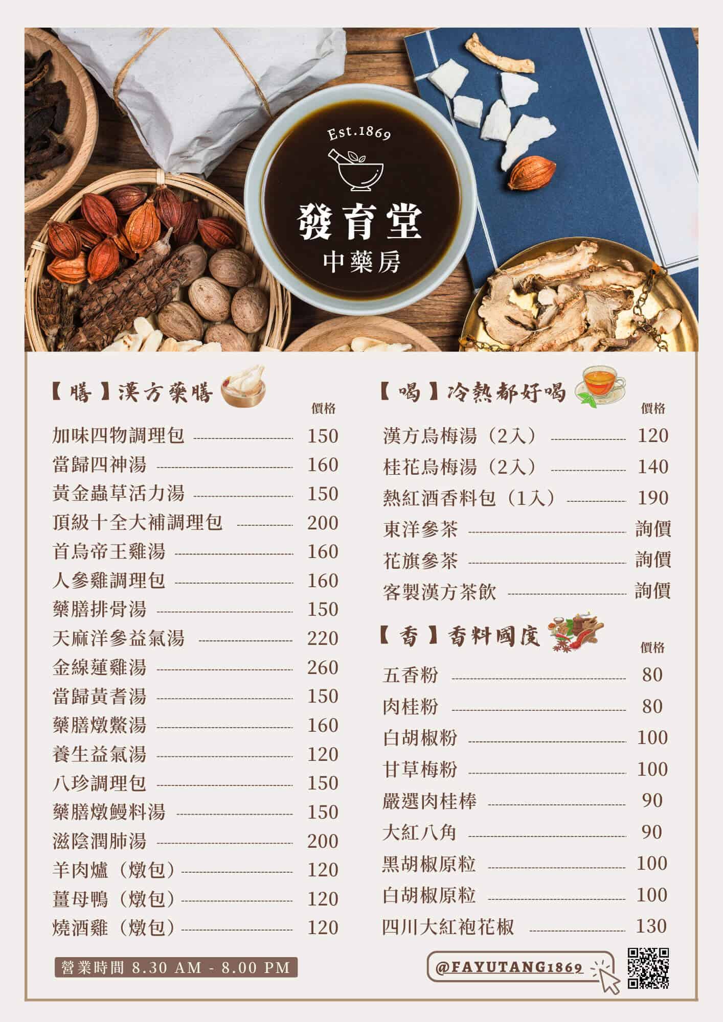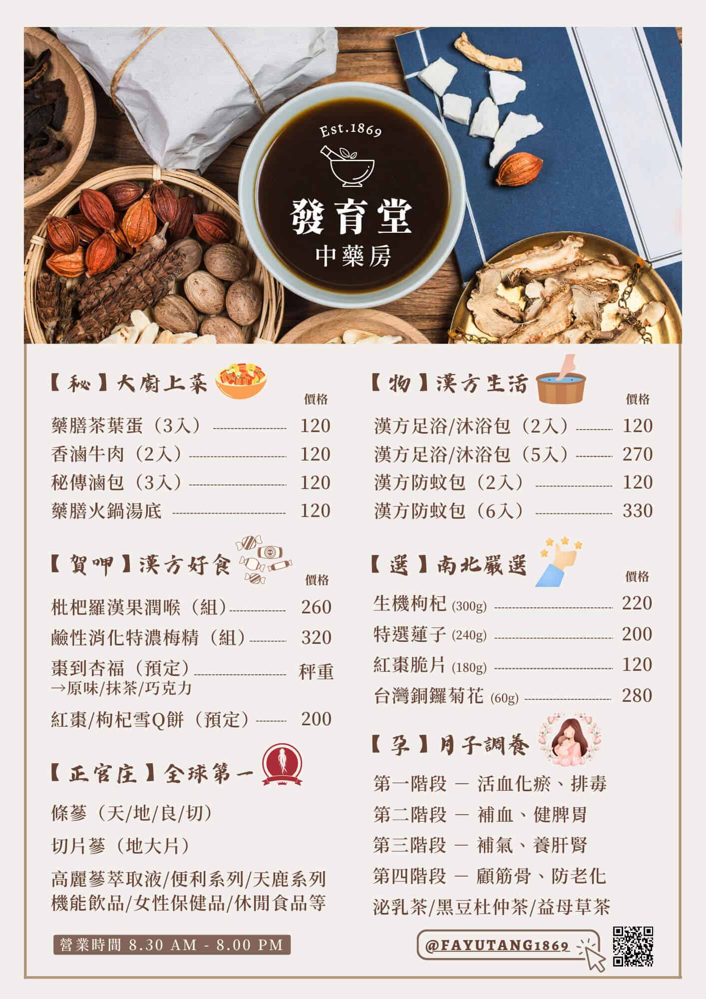 發育堂是政府核可的實體漢藥鋪,我們有天然漢方茶飲、傳統藥膳燉湯及月子